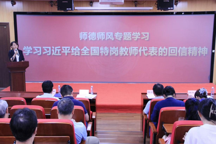 随后学院开展了师德师风专题学习,学习习近平总书记给全国特岗教师代表回信精神,张颖书记强调要“守初心、强使命”:一是要“守初心”,要求各位教师坚守育人初心,守好讲台站好讲台,树立“以德施教、以德立身”的道德高线;二是要“强使命”,抓住人工智能发展机遇,聚焦科技前沿,提高育人本领,落实到教学、科研与人才培养中,实现教学与科研的相互促进、双向赋能。