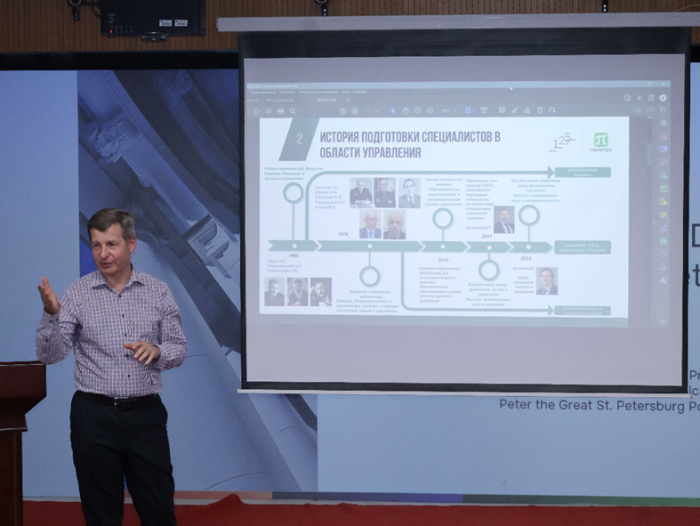 随后,Dmitrii Efanov 教授作题为 “Design Approaches of Discrete Devices with Fault Detection” 的学术报告。他从离散器件设计与故障检测的角度出发,介绍了当前国际前沿的智能检测技术与设计理念,重点讲解了如何利用智能算法优化设备结构,提高工业系统的稳定性与容错能力。
