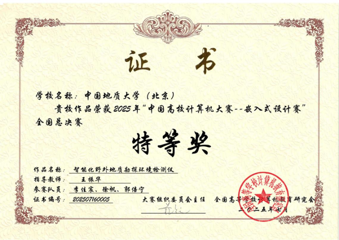 2025年中国高校计算机大赛—嵌入式设计赛(以下简称嵌入式设计赛)全国总决赛在北京圆满落幕。由我校人工智能学院计算机科学与技术专业22级本科生李佳宸、郭倍宁,电子信息工程专业22级本科生徐帆三位同学组成的团队凭借扎实的专业知识和出色的团队协作能力,在人工智能学院王振华副教授的指导下斩获全国总决赛特等奖,这也是我校在中国高校计算机大赛系列赛事中取得的最佳成绩。